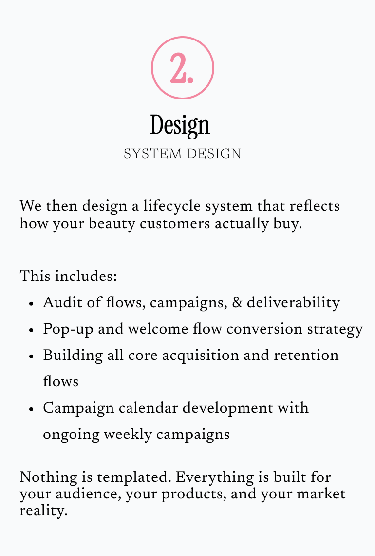 A complete, beauty-specific lifecycle revenue system (strategy, copy, design, and full ESP upload + scheduling):