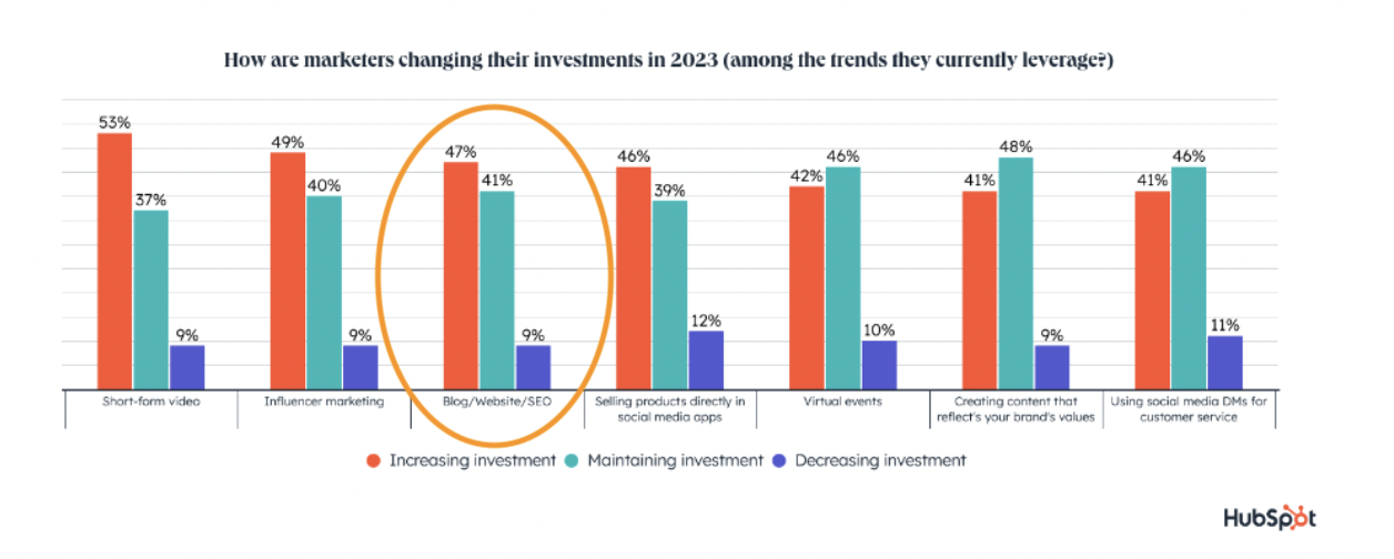 Blogging Benefits In 2023 - 88% Of Brands Are Increasing Or Maintaining Blog/Website/SEO Investment
