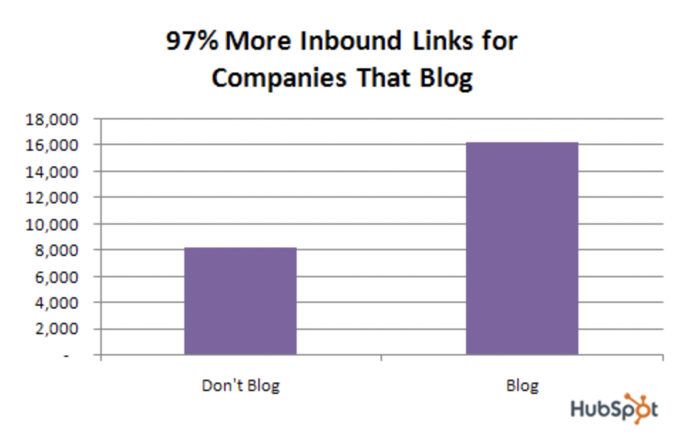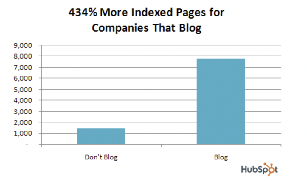 They’ll also earn 97% more inbound links, 55% more visitors to their sites, and 434% more indexed pages in Google.”