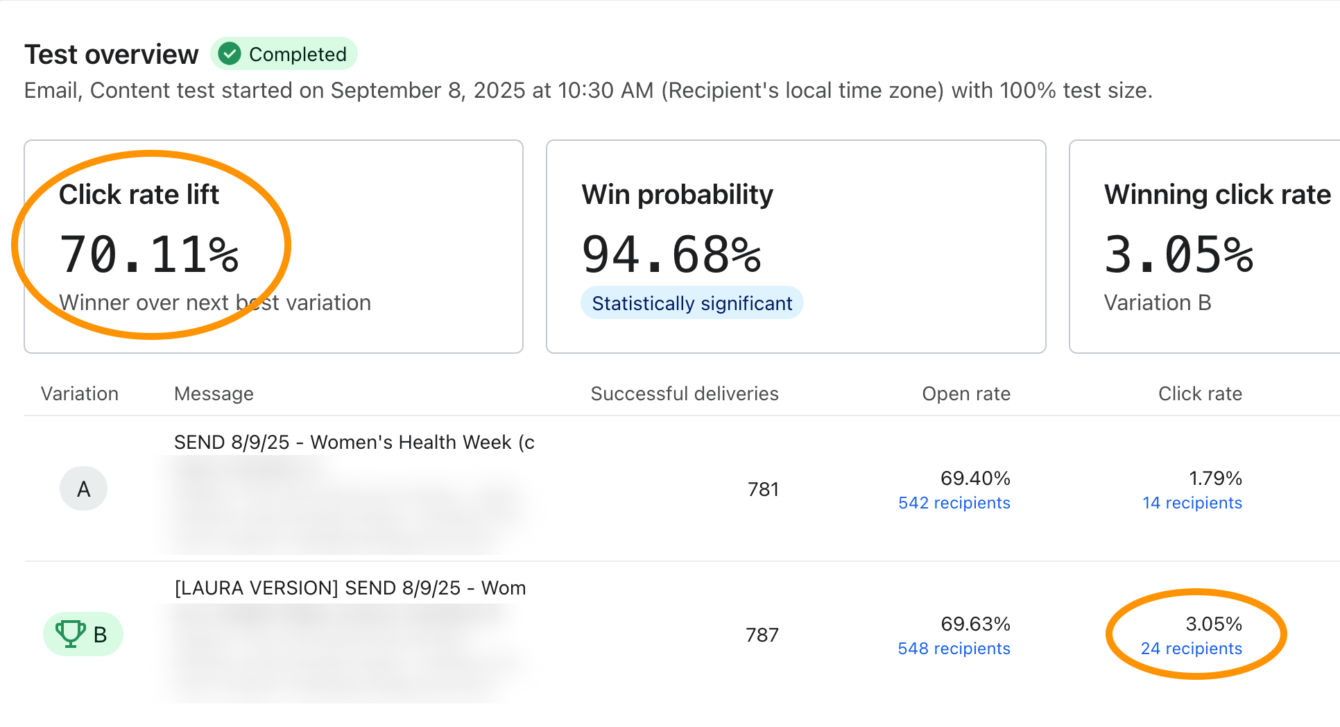 Click-through rate jumped +70% — from 1.79% → 3.05%.