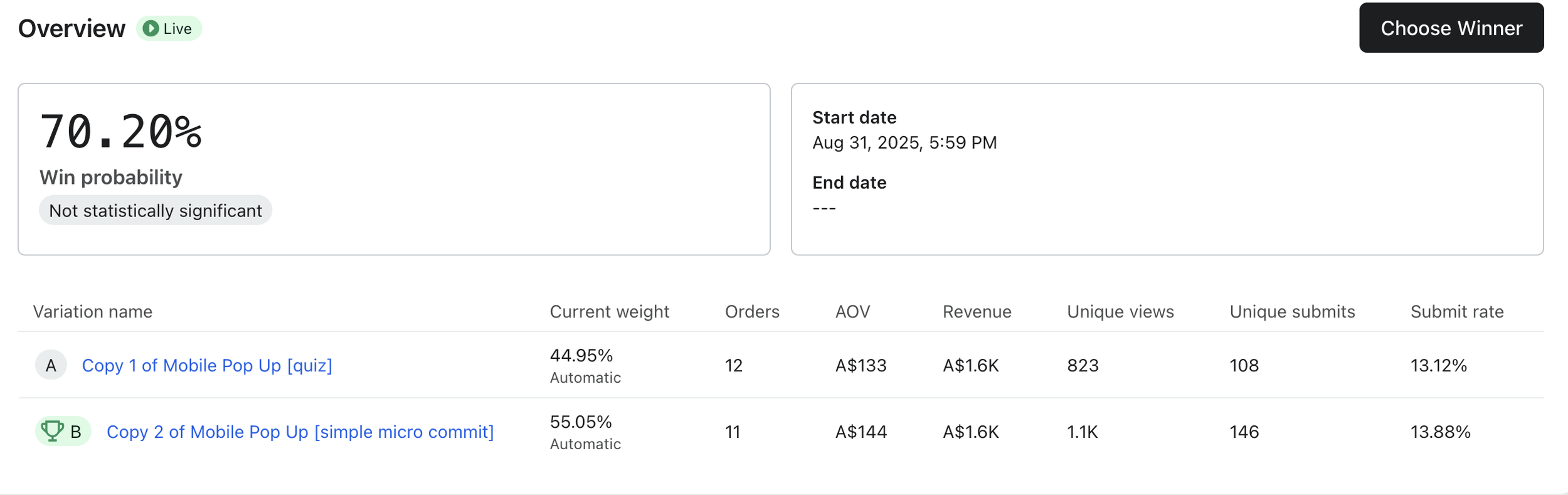 Ongoing A/B tests to optimize acquisition performance as much as possible.